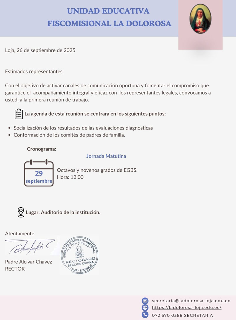 Unidad Educativa Fiscomisional "La Dolorosa" y los miembros del Consejo Ejecutivo período 2025-2026