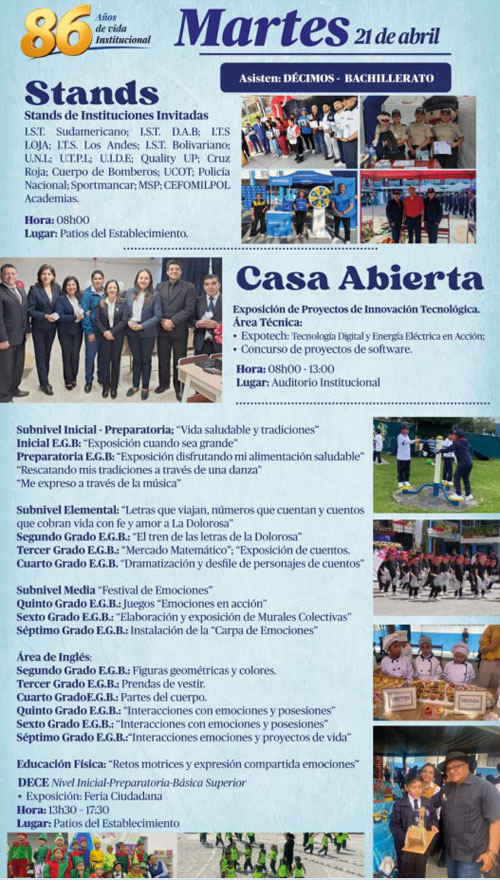 El Currículo Institucional se trabaja de acuerdo a los lineamientos emanado por el Ministerio de Educación de acuerdo a la Reforma Curricular tanto para la Educación Inicial, Educación General Básica, como el Nuevo Bachillerato Ecuatoriano. El Modelo Pedagógico Institucional “Humanista-Socio-Cultural” fundamentado en: lo Socio Cognitivo, Epistemológico, Psicopedagógico y Trascendente, enmarcado en un proceso constructivista del aprendizaje, centrado en el estudiante como actor principal del proceso, para la vida y desde la vida.