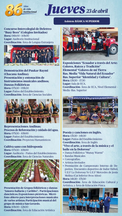 La Unidad Educativa Fiscomisional “La Dolorosa”, está constituida por 89 Docentes, 8 Administrativos y 1678 estudiantes en las jornadas matutina, vespertina y nocturna.