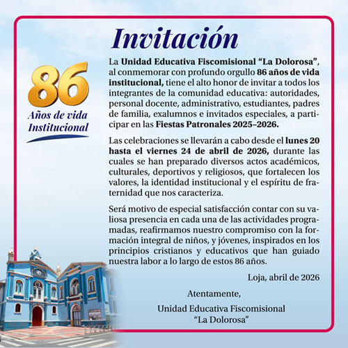En el año de 1940 el Sr. Obispo de la Diócesis de Loja, Monseñor Nicanor Roberto Aguirre, tuvo la idea de realizar la fundación de la hoy sección diurna La Dolorosa y, se resolvió hacerla con la ayuda del clero lojano, constituyéndose como primer rector el Sr. Don Francisco Valdivieso Samaniego.