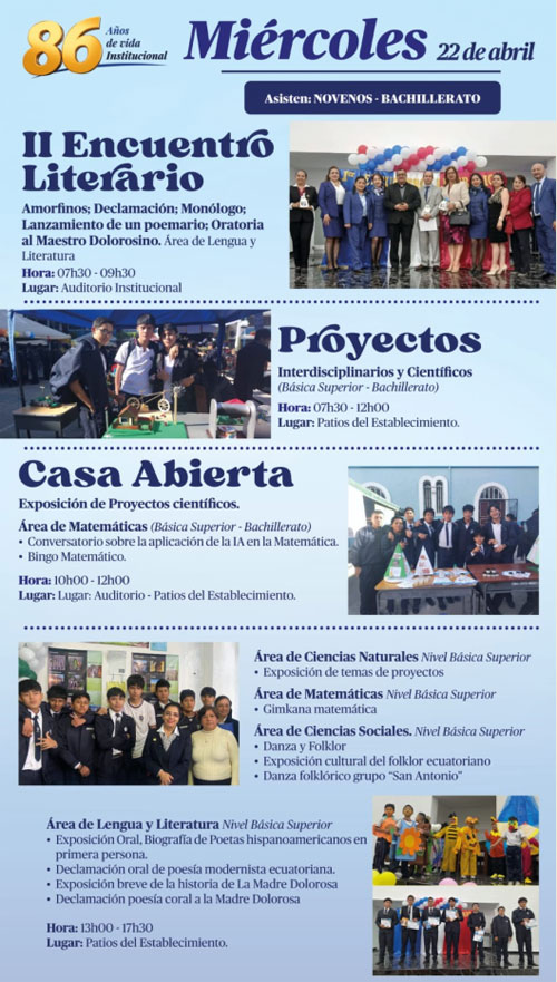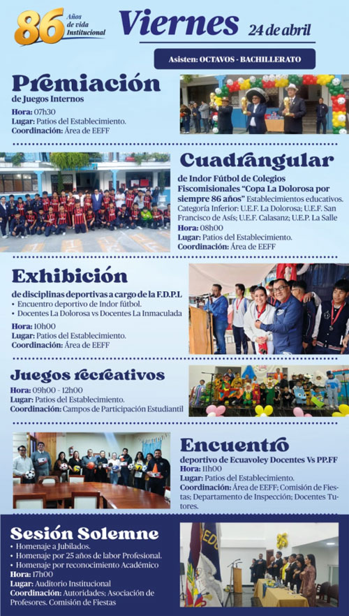 La Unidad Educativa Fiscomisional “La Dolorosa”, está constituida por 89 Docentes, 8 Administrativos y 1678 estudiantes en las jornadas matutina, vespertina y nocturna.